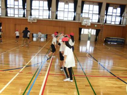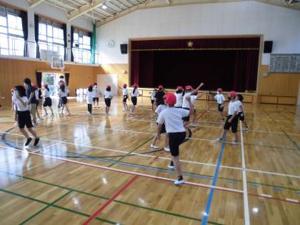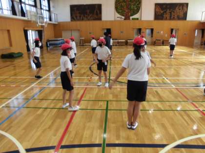 5年生の体育の学習で、フォークダンスを行いました。前後のステップやサイドへのターンなど、曲のリズムに合わせて楽しく踊ることができています。