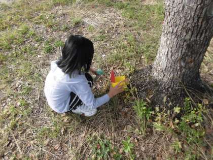 自分の気に入った場所に画用紙やモールで小道具を作り、自分のテーマに沿ってお気に入りの一枚を写真でとりました。
