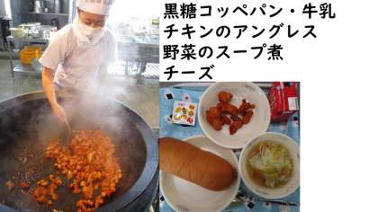 今日の「チキンのアングレス」は料理酒・塩・こしょうで下味をつけた鶏肉に、米粉・片栗粉をつけて油で揚げます。そして、砂糖・トマトケチャップ・ウスターソースを作ったソースをからめて作ります。カリッと揚げた鶏肉が柔らかくなりすぎないよう、何回かに分けてソースをからめてくださっていましたよ。野菜のスープ煮はチキンスープで作ります。玉ねぎ・にんじん・キャベツをコトコトじっくり煮込みます。野菜本来のうま味や甘味が感じられました。