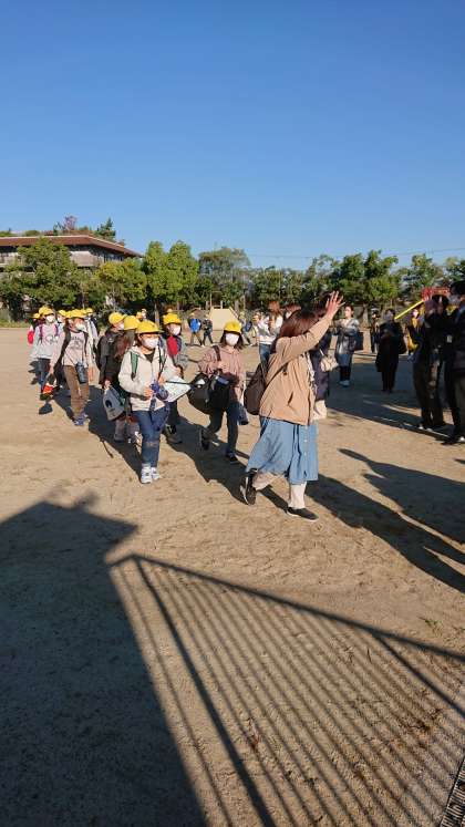 出発式を終え、学校を出発しました。約束を守り、役割を果たして大いに楽しみましょうと係の人からあいさつがありました。きっと素晴らしい修学旅行になりますね。