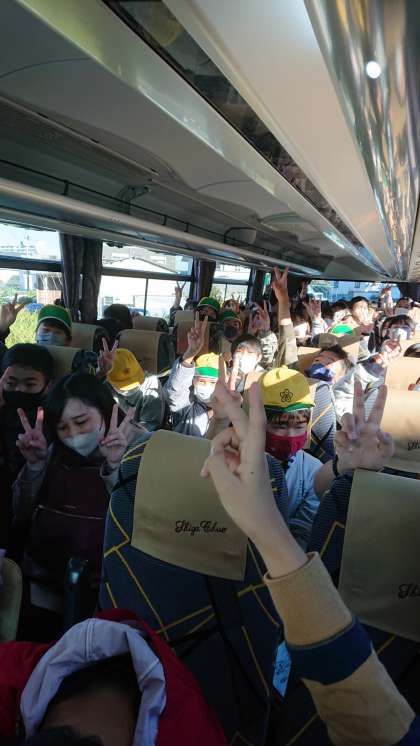 バスが出発しました。バスの中で出来ることは何か、みんなの一生の思い出にするために出来ることは何かを確認しました。騒がずに静かに過ごすこと、マスクをしっかりすることがこの後の活動を思いっきり楽しむことにつながります。