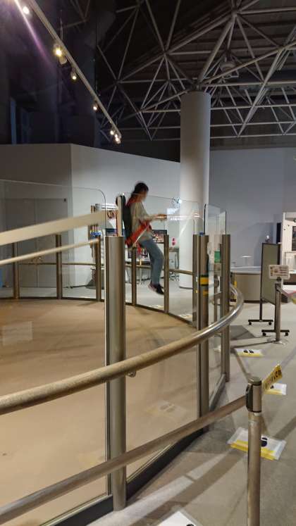 子ども科学館の中の一番人気、月の重力でジャンプすることが出きるアトラクションです。高くジャンプできるかな。