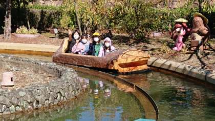 吉野川めぐりを楽しみました。ちょっとした急流滑りもあります。水しぶきで少し濡れた人もいましたが、とても天気が良いのですぐに乾きます。