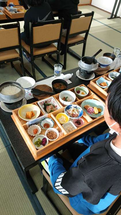 朝御飯もとても豪華です。何より一人ずつお釜でたきあげたご飯がとても美味しいのです。しっかり食べて今日も思いっきり楽しみます。みんな元気です。