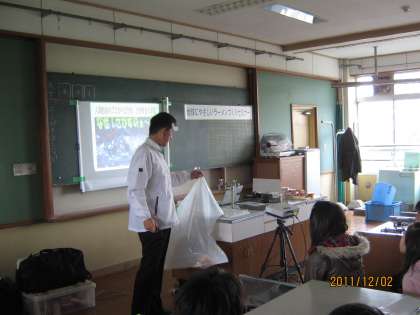 初めに話を聞きました。ラーメンづくりとどうつながるのか…子どもたちは真剣に聞いていました。