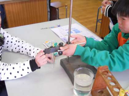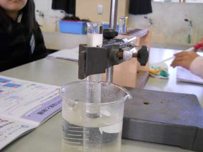しかし,その変化はとても小さく,子どもたちは目を凝らして試験管の水面を見ています。