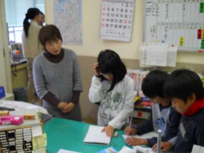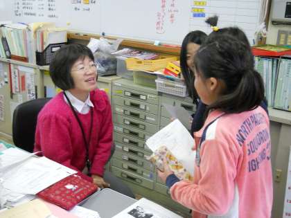 とにかく「丁寧な言葉遣いで,失礼のないように!」ということを頭において,「先生,行ってくるわ…!」と子どもたちは少し緊張の面持ちで出かけていきました。様子を見に行ってみると,先生方のお話を真剣に,大事なことはメモをとりながら聞いていました。取材先の先生方からも「しっかりインタビューしてくれたよ」とお褒めの言葉をいただきました☆