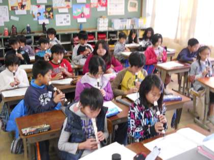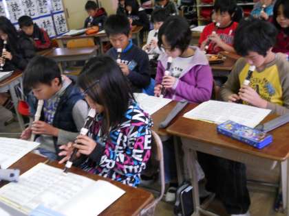 朝のきらっとタイムの後,全員でリコーダー演奏をします。曲は,音楽で学習中の「カントリーロード」です。お家の宿題でも学校でも頑張って練習していきましょう。