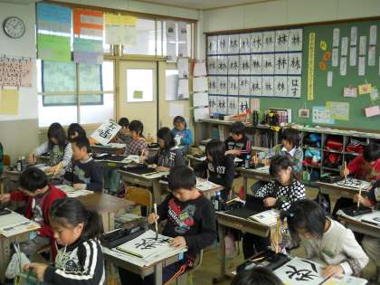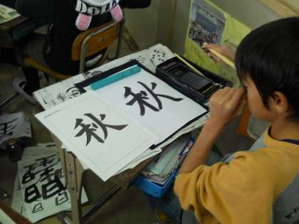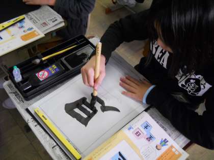 文字のバランスや大きさなど,気をつける点はたくさんありますが,子どもたちは黙々と自分の選んだ字と向き合っていました。