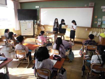 美豆小学校では、11月を読書月間としています。その取組の1つとして、8日(火)に図書委員会の人が低学年に読み聞かせに行きました。5年生も委員会として初めての仕事です。15日(火)には高学年にも読み聞かせに行きます。18日(金)には児童朝会での発表も予定しています。みんなが読書に親しむきっかけを作ろうと頑張ってくれています。