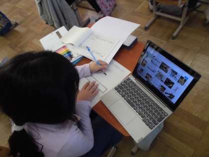 国語科の学習では自分のお気に入りのことわざや故事成語を使ってカレンダーを作っています。イラストも入っていて完成が楽しみです。