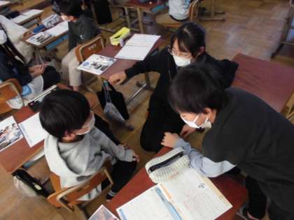 昔から伝わる伝統文化の良さにどのようなことがあるのかを考えて話し合いました。昔の人の思いを受けつぐ。昔からあるものを残すことで、日本の良さが未来の人にも伝わる、など、たくさんの考えを出していました。