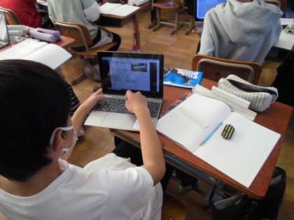 実習生と再び算数の授業を行いました。今回は紙を折ってできる長方形の数や折り目の数を表に整理して求めました。表にして、変わり方のきまりを見つけると、紙を折って数えるのが難しい場合でも答えを求めることができました。