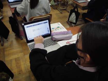 わられる数を分子、わる数を分母として商を分数で表すことを学び、練習を繰り返していました。