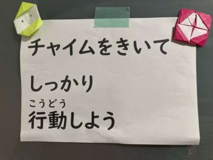 12月は、2学期に取り組んだ「気持ちのよいあいさつをしよう」「気持ちのよい言葉で伝えよう」「チャイムをきいてしっかり行動しよう」の3つの生活目標の中から、自分たちがまだできていないことや、もう少し頑張りたいと思うことを選んで取り組みます。