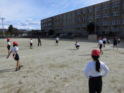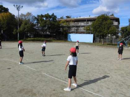 体育はエンドボールが始まりました。ゴール型のゲームで、チームでパスをつないで味方のゴール役の人がキャッチ出来たら一点です。ゴールマンの前にはゴールを邪魔する役の人もいるので、よりチームワークを大切に作戦を練る楽しさがあります。