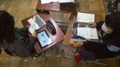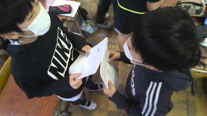 外国語の学習で、ものの値段を尋ねあう表現の学習に取り組みました。身の回りの物の値段を、"How much is it?" "It's 650yen."と尋ねたり答えたりし合いました。何百や何十の表現が難しかったようですが、何度も言い合っているうちにスラスラといえる子が増えていきました。
