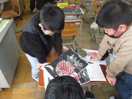 出来上がった作品を鑑賞し、友達の良いところをたくさん見つかていました。