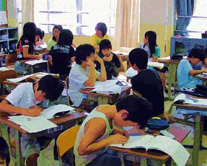 9時から10時までの1時間,子どもたちが集まり,集中学習をします。