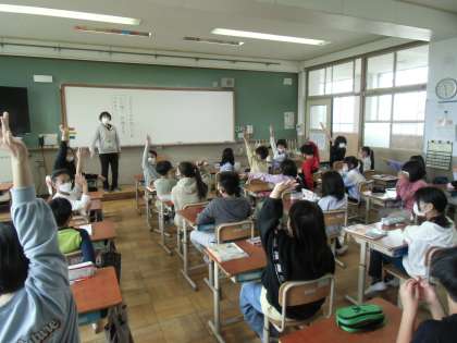 4年生になって初めての国語科の学習です。1年間の学習の見通しを持ち、新出漢字の練習と自己紹介をしました。友達との共通点を見つけて、どんどん挙手をしてとても意欲的なスタートになりました。