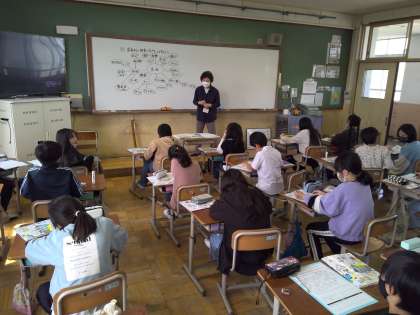 5年生になって新しく始まった教科「家庭科」。掃除や料理、洗濯、裁縫…等お家でしている仕事や知っている仕事について出し合いました。やったことがあるという人も、やったことがないという人もいて、子ども達も期待と不安が入り混じっている様子でした。その後、教科書を見て、1年間どのようなことをするのか見通しをもちました。授業の最後には、「料理してみたい」「ミシンってどうやって使うのかな」と期待を膨らませる子が多かったです。