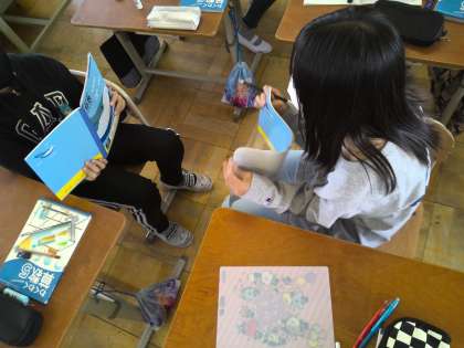5年生の算数で、整数と小数の学習に取り組んでいます。10倍や100倍や1000倍すると、小数点がどのように移るのかを調べました。「10倍ごとに1つずつ移る」「0の数だけ右に移る。」など、一人ひとりの気付いたことをもとに学習をまとめました。式や答えだけでなく、気付いたことをノートに書き加えていくことで、より理解が深まるように学習を進めていました。