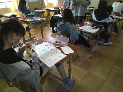 算数では、「対称な図形」を学習しています。まずは、教科書に載っている整った4つの図形を写して切り取り、仲間分けをしました。仲間分けした図形について、これから詳しく学習していきます。