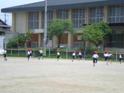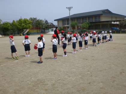 運動場に出た後は、並ぶ練習をしたり、おにあそびをしたりしました。