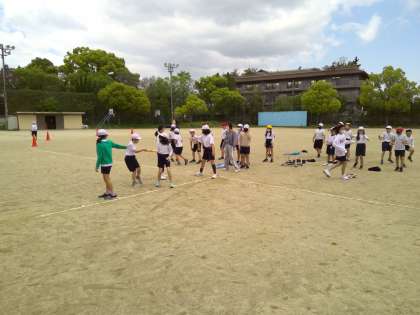 5年生の体育で50m走を測りました。その後、簡単にチーム分けをしてリレーを行いました。みんなで応援しあって、とても盛り上がりました。これからバトンパスの仕方や、コーナーの回り方を学習していきます。