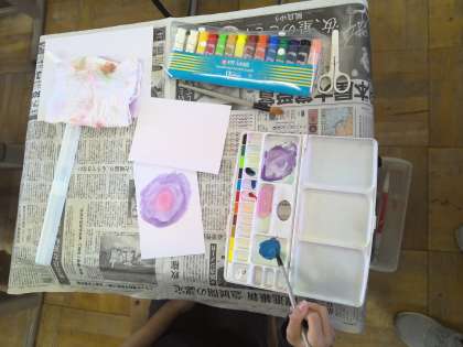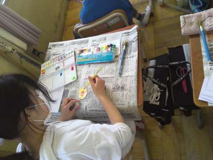 図画工作科の学習で、心のもようを表しています。5年生に進級した気持ちを色や形で表し、心のもようにしていきます。子ども達がそれぞれの思いを表していて、楽しく活動できていました。