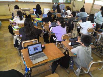 外で観察したことをもとに天気がどのように変わっていくかを予想した上で、気象庁のHPを見て、日本の中で天気がどのように変わっているかをスライドにまとめていきました。タブレットを使って授業することに慣れている子もそうでない子もいましたが、わかったことをもとに考えられることについて今後も深めていきたいと思います。