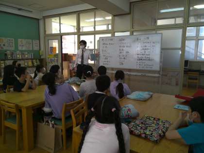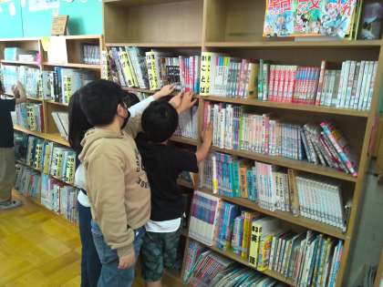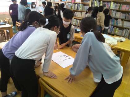 今年初めて図書館に行きました。はじめに図書館司書の先生から図書館の使い方をお話していただきました。その後、お題に沿った本を探すミッションに挑戦しました。どの本棚を探すと見つかるのかを班で相談しながら見つけていきました。図書館での活動を楽しみました。5000ページを目指して1年間読書に取り組んでいきます。