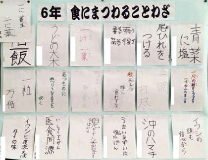 6年生は,小学校生活最後の給食週間の取り組みとして,<食にまつわることわざ>を調べることにしました。
