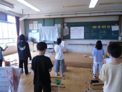 「花束をあなたに」の範唱を聴いて曲の感じをつかみ、みんなで歌いました。4年生のきれいな歌声がとても心地よかったです。次の時間も楽しみです。