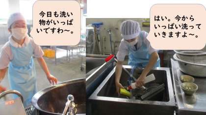 新献立の「鶏肉の塩こうじあげ」は、塩こうじにつけた鶏肉を米粉と片栗粉をつけて油で揚げました。肉がやわらかくて、大好評でした。「また、今日の給食を作ってほしい。」「鶏肉の塩こうじあげが甘い匂いがしました。」「切干大根がだしの香りがしていた。」「(みそ汁の)わかめがふわふわしていた。」と感想を書いてくれました。おかずが3品で、洗い物もたくさんありますが、給食調理員さんも残菜の少なさにびっくり。「頑張って作って、食べてくれたら嬉しいわ」とおっしゃっていましたよ。
