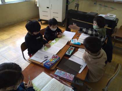 音読発表会に向けて練習や話し合いにも熱が入っています。それぞれの役になり切って音読してほしいと思います。