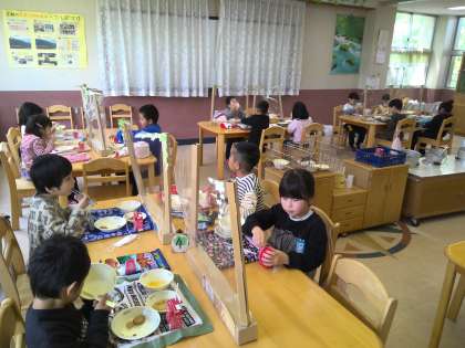 今年度初めてのランチルームでの給食でした。普段と違う教室で楽しく食べることができました。次に使う人のことを考えて片付けもしっかりとがんばりました。