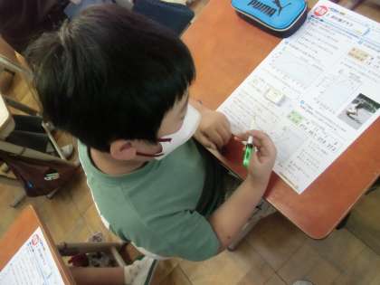 今年度算数科2回目のテストです。時間の限り見直しをしてがんばりました。他教科でも使える折れ線グラフ。しっかり覚えておこうね。
