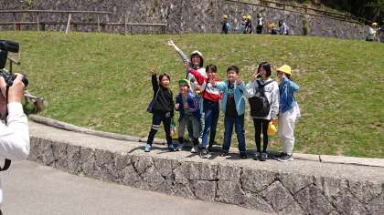 カメラマンさんに記念の写真を撮っていただいて班ごとに出発です。山の家のあちこちに問題がたくさんあります。自然を満喫しながら回って行きます。