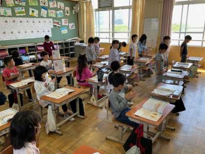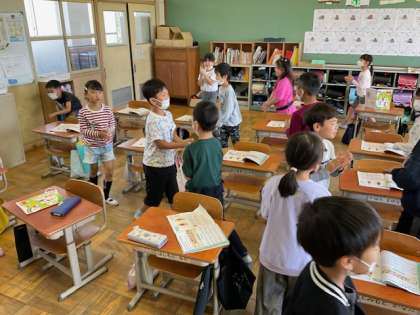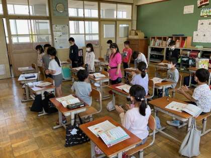 2拍子の曲に合わせて、手拍子や歩いてみました。体で拍の感覚をつかんでもらいました。歌う人と拍をとる人のグループに分かれて楽しく活動できました。