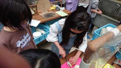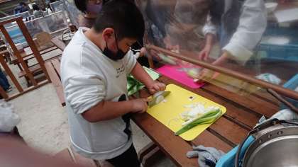 玉ねぎを切るのもとても上手です。おうちでもお手伝いしているんだなというのが分かります。