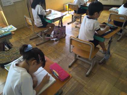 聞きながらメモを取ることは難しいことですが、集中して取り組んでいました。