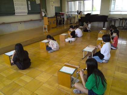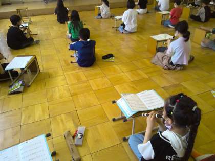 音楽の学習で、「小さな約束」のリコーダーでの演奏に取り組みました。初めて「ソ」のシャープが出てきます。悲しい曲調に合うように演奏できるように練習をしていきます。