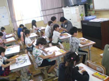 小学校に入学してから経験した楽しかったことやうれしかったことを絵に描いています。