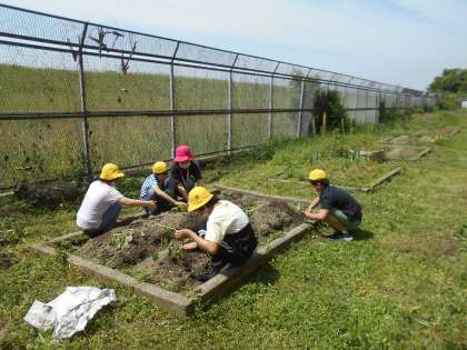 本日、つばさ学級の畑にさつまいもの苗を植えました。