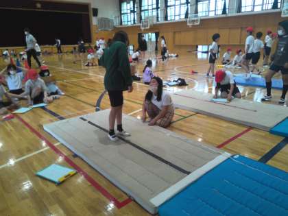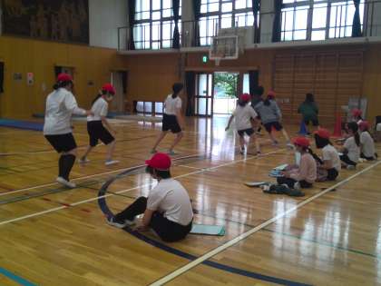 体育館で、「反復横跳び」「立ち幅跳び」「長座体前屈」の体力テストを行いました。これまでよりも記録を伸ばせるように頑張りました。あとは、「ソフトボール投げ」「シャトルラン」が残っているので、力を出し切れるといいなと思います。
