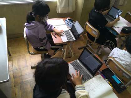 小数のかけ算の学習が進んでいます。この日は、かける数が1より大きいか小さいかによって積がかけられる数よりも大きくなるか小さくなるかということを学びました。タブレットを使って繰り返し練習をすることで、かける数に注目すると分かるということが深まりました。