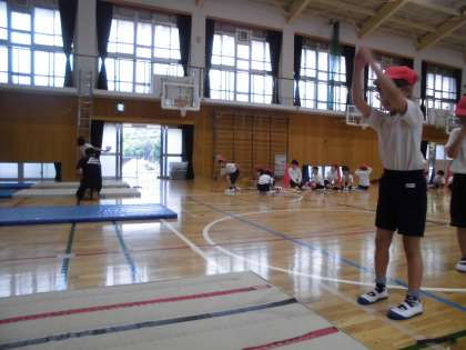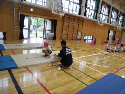 立ち幅跳びや反復横跳びに挑戦しました。去年の自分よりも記録を伸ばそうと頑張っていました。