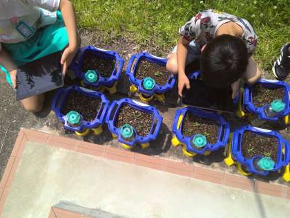 生活科で育てているミニトマトの芽が出てきました!毎日愛をこめてお世話していたのでみんな嬉しそうでした。