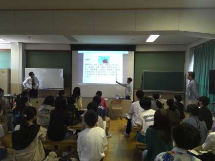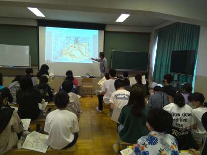 総合「伏見のみりょく」の学習でゲストティーチャーに来ていただき、代表の子の作成した紹介スライドを見ていただいたり、「伏見の街」についてのお話をしていただいたりしました。伏見の街の歴史や地理について教えていただき、自分たちで調べているだけでは知らなかったことについて学ぶことができました。